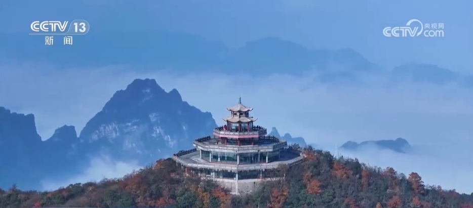 深秋时节,湖南张家界天门山景区迎来一年中充满诗意的季节。巍峨的峰林间,红枫似火、银杏金黄,与各色山花野果和青松翠柏交织相映,将连绵山峦渲染成一幅斑斓画卷。得益于1500多米的海拔,天门山形成了独特的山地小气候,气温常年较山下低约6℃,凉爽的气温使得这里的秋意更加浓郁绵长。