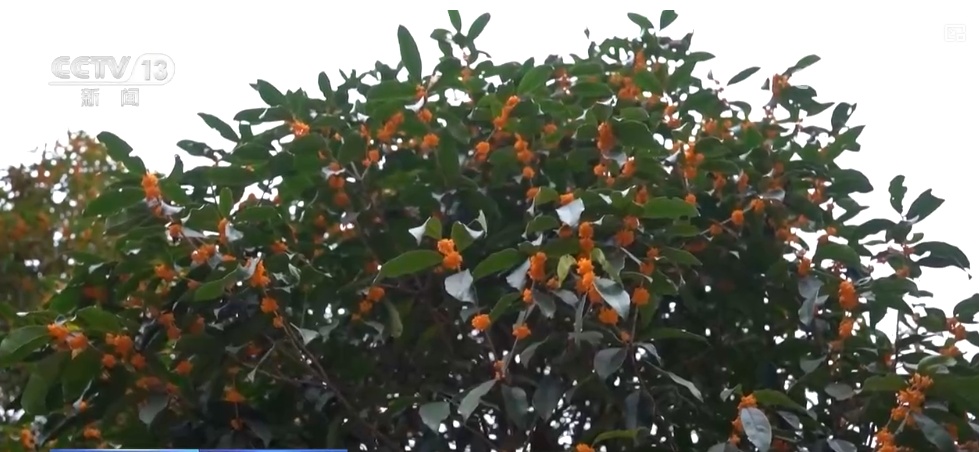 在浙江金华,安地镇项村的“十里桂花长廊”也迎来了一年中最美的时节。连绵的桂花树如期绽放,花枝满满、香气袭人。